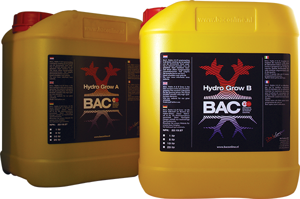 Met Hydro bloeivoeding zorgt u voor de juiste voedingsstoffen voor groente en snelgroeiende planten. Het medium neemt de plantenvoeding samen met het voedingswater op. Bac werkt uitsluitend met hoogwaardige zuivere voedingsstoffen en chelaten, die direct en volledig opneembaar zijn voor de plant.